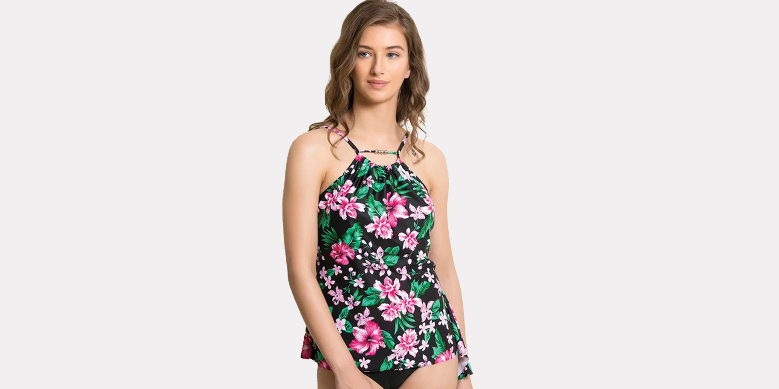 What makes this printed Tankini Set one of our favourites is that this two-piece swimsuit comprises a tank top and a bikini bottom to give you the perfect beach look. This cutesy print comes to you in the form of a slip-on style that also has elastic under the bust area to deliver firm support and fit. Get yourself a tankini set for a flattering beach look that also comes with an in-built bra for a more secure fit!
