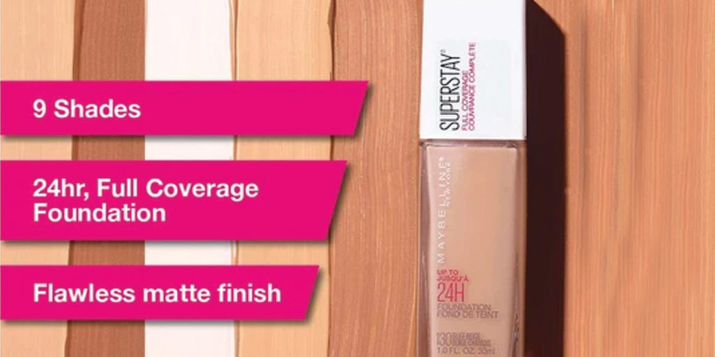 Our pick: try the Maybelline New York Super Stay Full Coverage Foundation which has a flawless matte finish and lasts all day.