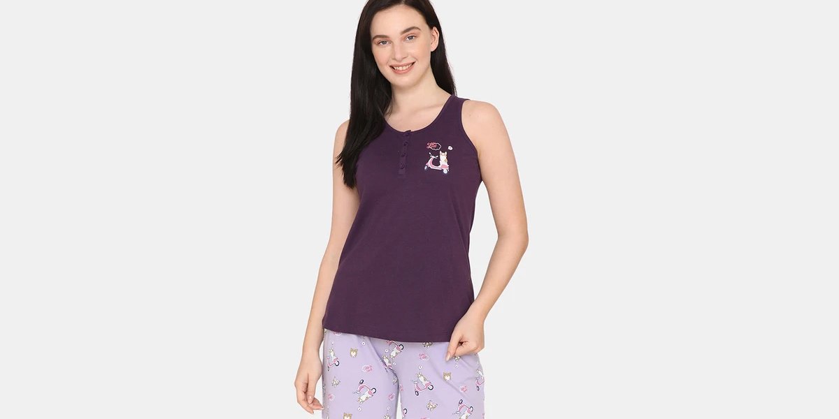 Ideal for combating those humid nights, sleep tops are perfect picks for the nighttime wardrobe. These tees are available in a plethora of styles, patterns, colors, and prints. These are all-season wear too, and can also be seen moonlighting as lounge tops on lazy weeknights. Pair them up with some funky pyjamas or shorts with a complementary design, and you’ve got yourself a recipe for a pyjama party!