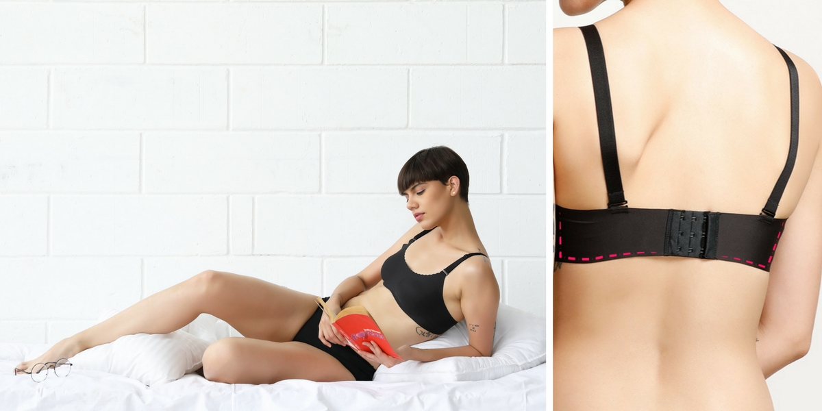 Absolutely no elastic! How great does that sound? Say goodbye to those terrible red marks you have under your bust at the end of a long day. This bra is something you can work in, sleep in and even party in without being bothered at all.