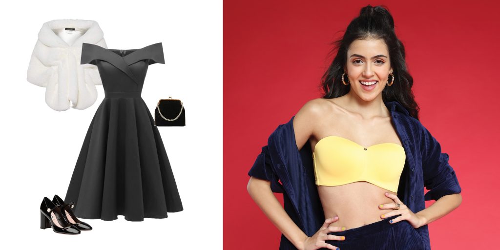 For you, effortless style is key. A black off-shoulder dress is a perfect choice for a summer date – it’s sleek, sophisticated, and just a little bit alluring. And to keep everything in place, a Strapless Bra is a must-have accessory! With this outfit, you’ll exude confidence and cool, just like a true model. So go ahead and strike a pose – you’re ready for your close-up!