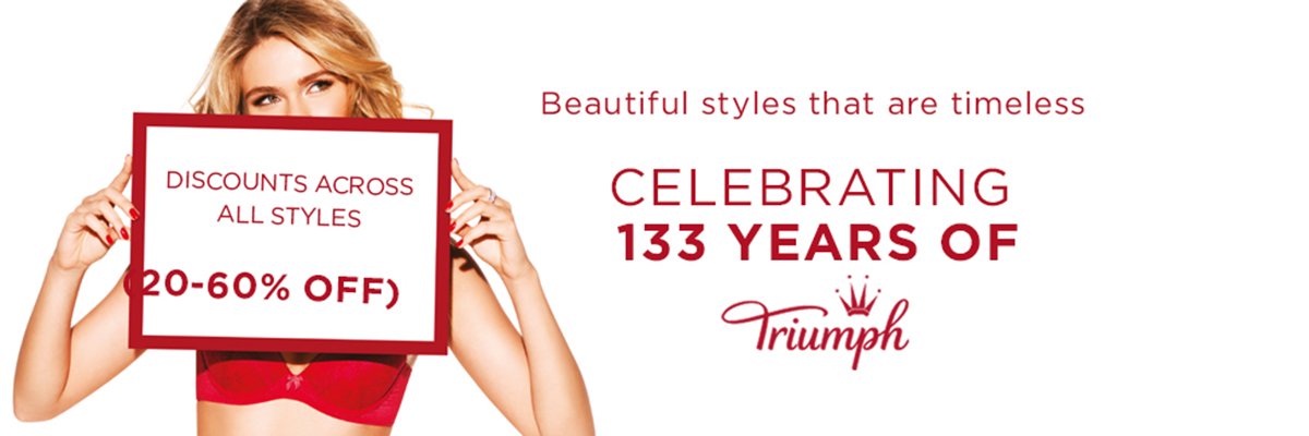 We at Zivame are delighted to celebrate one of our favourite brand’s 133rd anniversary this month. Avail a flat 20% off on all Triumph products on Zivame.