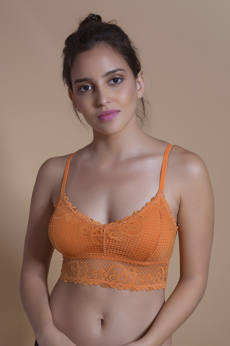 Innerwear as outerwear is a beguiling, but tough trend to embrace. This bralette under a lace, or see-through, top makes for the perfect inner-as-outer crossover statement.