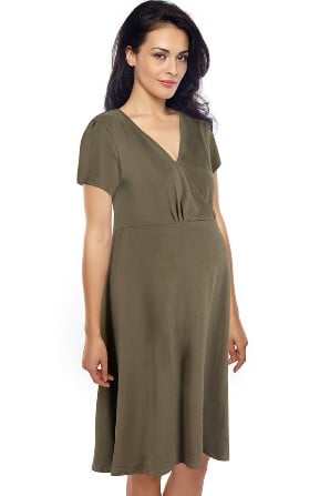 Who says nursing-wear has to be shapeless and unflattering? These all-organic cotton nursing nightdress lets you unhook the crossover-front, for easy nursing-access for the baby, while sporting a flattering cut, and a knee-length to keep you from looking like a frumpy-mummy.
