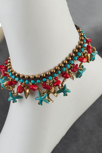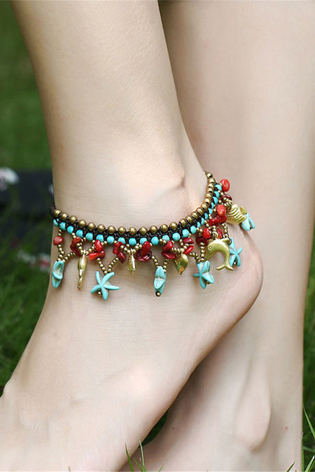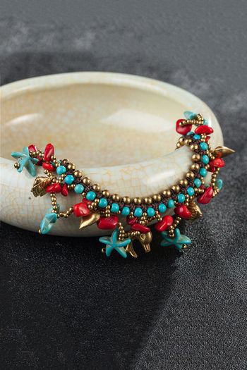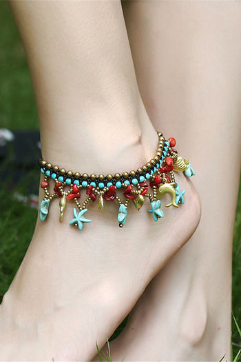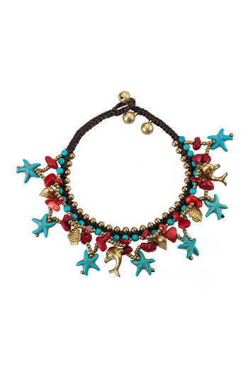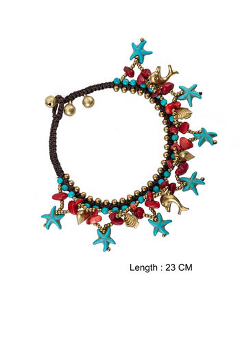 Yellow Chimes Bohemian Starfish Charms Beaded Bracelet Cum Anklet
