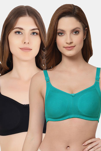 Buy Floret Double Layered  Non Wired Full Coverage Super Support Bra - Robin Blue Lime Green