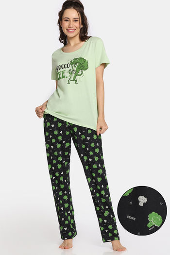 Buy Rosaline Bon Appetit Knit Cotton Pyjama Set - Black Beauty