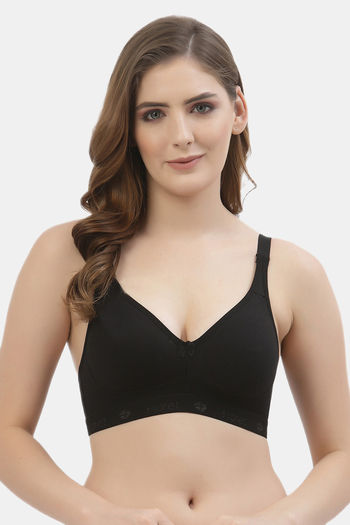 Floret Double Layered Non-Wired Full Coverage Minimiser Bra - Black