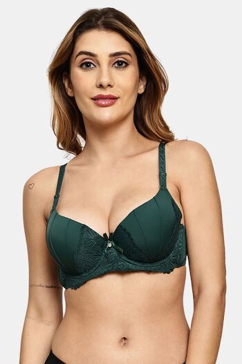 Prettycat Pushup Padded Underwire Lace T-Shirt Bra For Women - Green