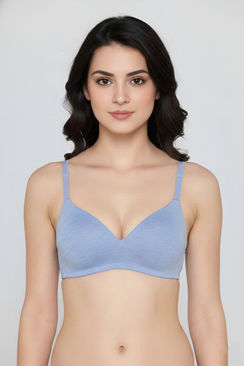 Zivame Bare Melange Padded Non Wired 3/4th Coverage Tshirt Bra - Blue Melange