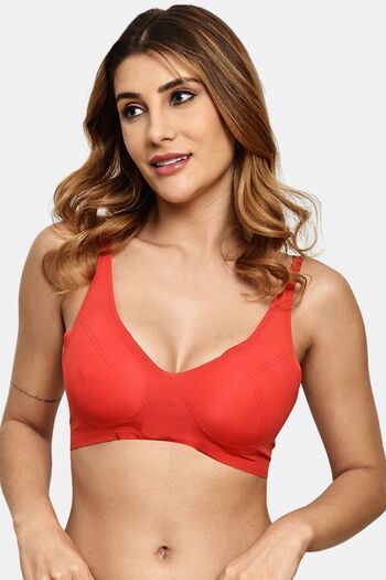 Komli Double Layered Non Wired Full Coverage Super Support Bra - Coral