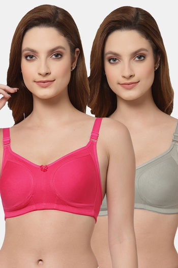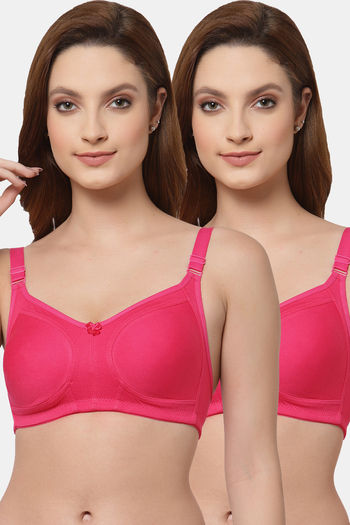 Floret Double Layered Non Wired Full Coverage Super Support Bra - Pink Magenta