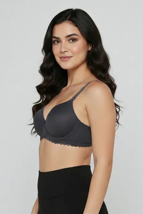 Zivame Padded Non Wired 3/4th Coverage Tshirt Bra - Anthracite