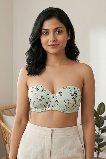Zivame Padded Wired 3/4th Coverage Strapless Bra - Grass Green Floral
