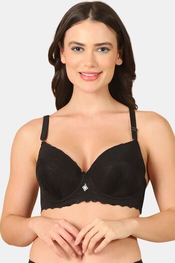 Prettycat Women’S Lace Non-Wired Lightly Padded T-Shirt Bra - Black