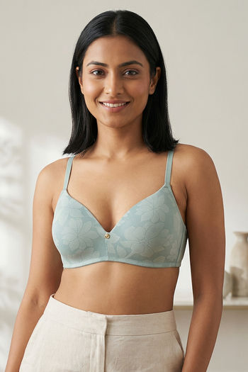 Zivame Padded Non Wired 3/4th Coverage Tshirt Bra - Mint Green