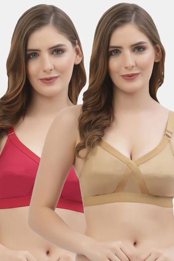 Floret Double Layered Non Wired Full Coverage Super Support Bra - Nude Red