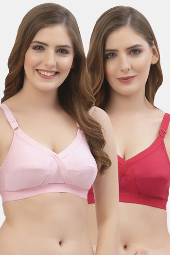 Floret Double Layered Non Wired Full Coverage Super Support Bra - Pink Red