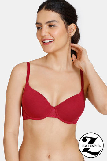Zivame Beautiful Basics Padded Wired Medium Coverage T-Shirt Bra - Beet Red