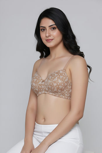 Buy Zivame Padded Non Wired 3/4th Coverage Tshirt Bra - Skin Bouquet