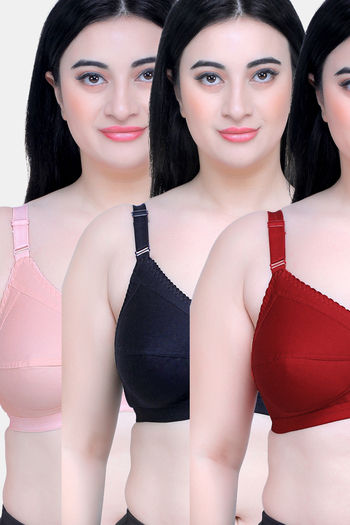 Maroon Clothing Single Layered Non Wired Full Coverage Minimiser Bra (Pack of 3) - Multicolor