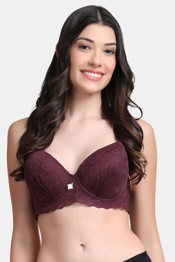 PrettyCat Women High Quality Floral Trim Lace T-Shirt Bra - Wine