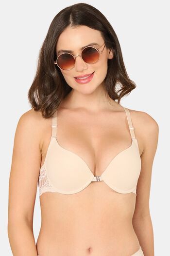 PrettyCat Lightly Padded Non Wired Sexy Plunge Bra For Women - Beige