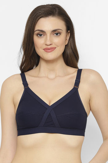 Floret Double Layered Non-Wired Full Coverage Super Support Bra - Navy