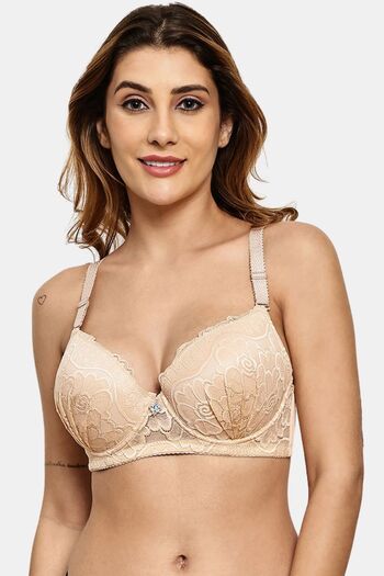 An innovation on non-wired bras, underwired bras are bras with a semi-circular wire insert at the bottom of the cup, enclosed safely and securely inside a fabric casing. An underwire bra enhances your natural body shape by providing the breast tissues with an additional lift and giving a contoured, more rounded shape to your bust by pushing up the weight towards the front. The superior support provided by underwired bras makes them the perfect choice especially for women endowed with heavier breasts. The underwires reduce the weight on the straps and help avoid back and shoulder pain. They also prevent chafing. Underwires help achieve the slightly separated cleavage look desired by the woman of today. Order our wired bras online and make your bustline its flattering best!