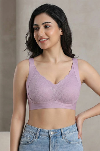 Zivame Freeform Padded Non Wired 3/4th Coverage Lace Bra - Elderberry