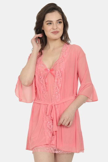 Secrets By ZeroKaata Nylon Babydoll With Thong - Pink