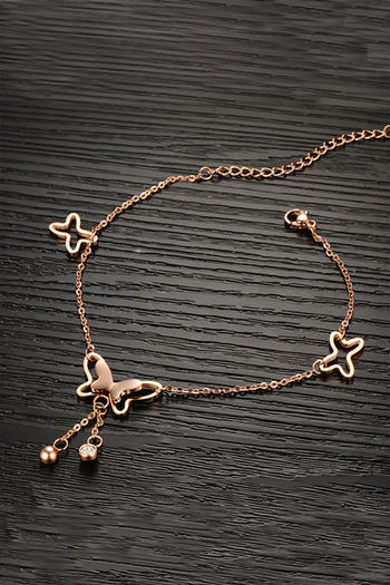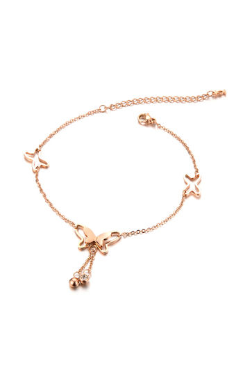 Yellow Chimes Butterfly Charms Rose Gold Plated Stainless Steel Anklet