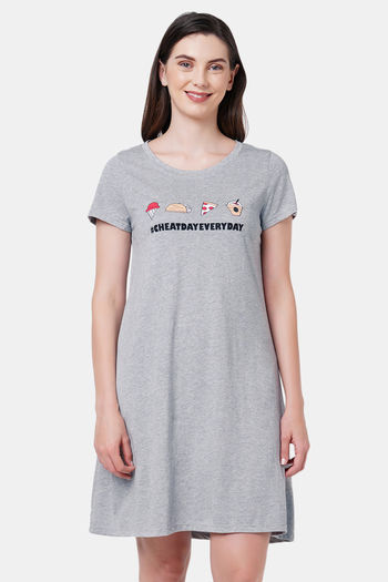Buy Soie Cotton Modal Knee Length Nightdress - Grey