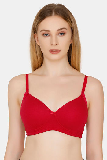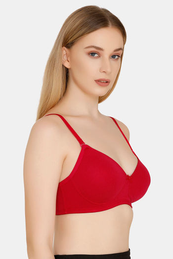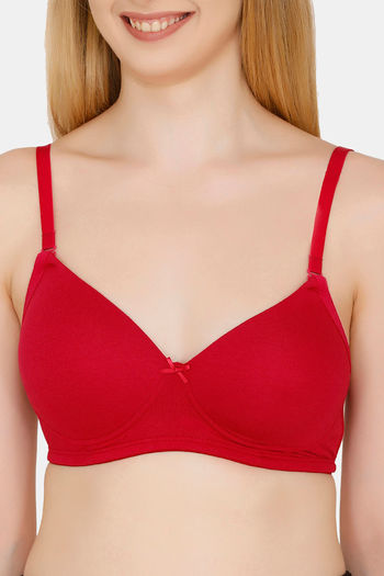 Bwitch Padded Wirefree Full Coverage Clean Finish Cotton Lined T-Shirt Bra - Beetroot Red