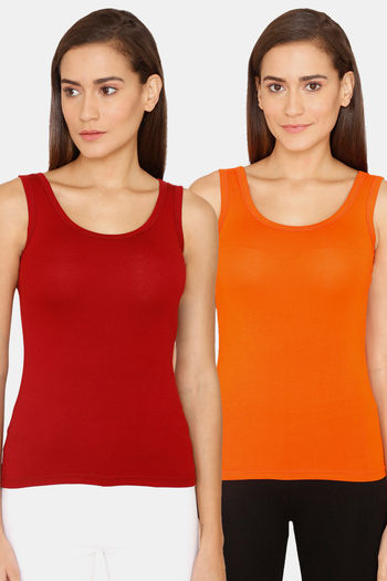 Lady Lyka Cotton Camisole (Pack of 2) - Maroon Orange