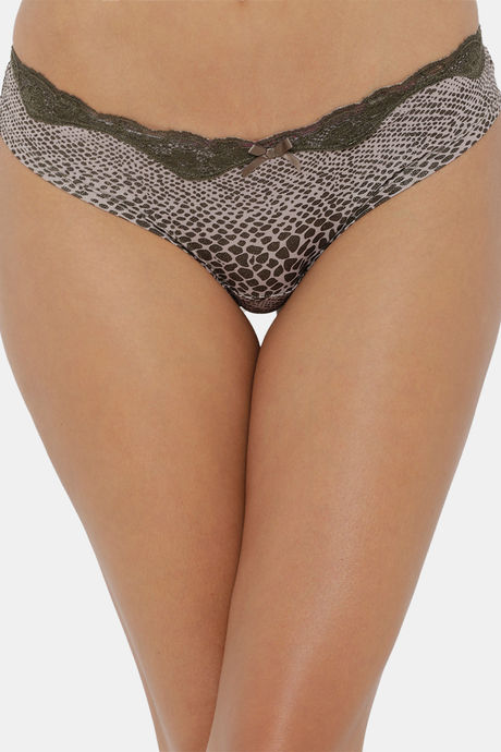 Candour London Women Yellow & Black Snake Skin Printed Bikini Panty - Mustard Animal Print