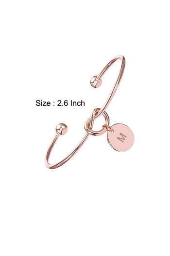 Yellow Chimes Charming Knot Alphabet Letter Initial M Rose Gold Plated Cuff Bangle Bracelet - Gold