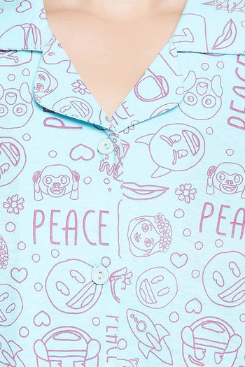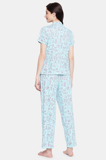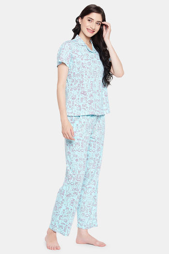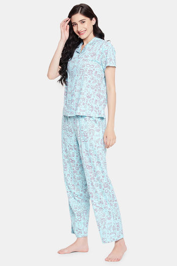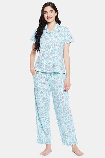 Clovia Cotton Pyjama Set - Blue
