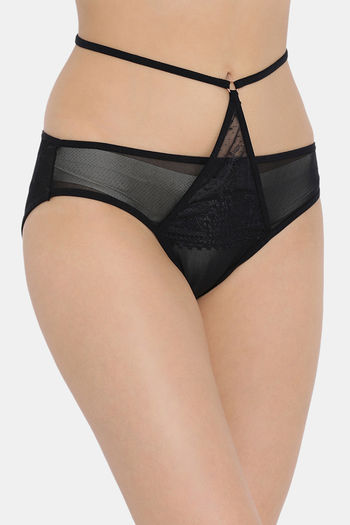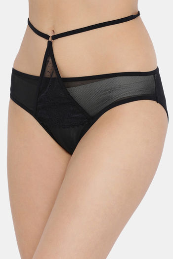 Clovia Low Rise Half Coverage Bikini Panty - Black