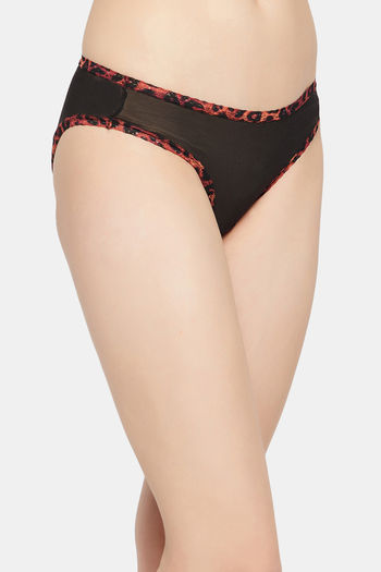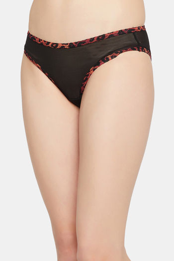 Clovia Low Rise Three-Fourth Coverage Bikini Panty - Black