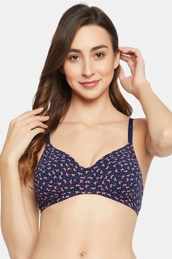 Clovia Padded Non-Wired Full Coverage T-Shirt Bra - Blue