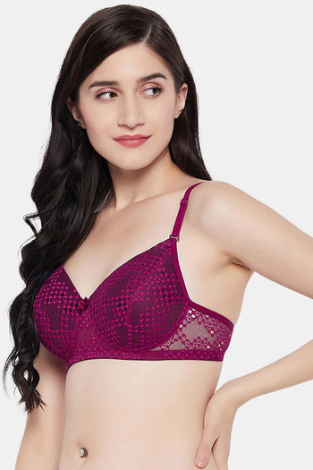 Clovia Padded Non Wired Full Coverage T-Shirt Bra - Purple