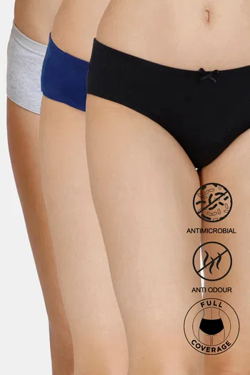 Zivame Anti-Microbial Low Rise Full Coverage Hipster Panty (Pack of 3) - Multicolor