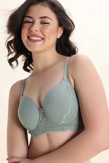 Zivame Coral Glaze Padded Non Wired 3/4Th Coverage Lace Bra - Granite Green