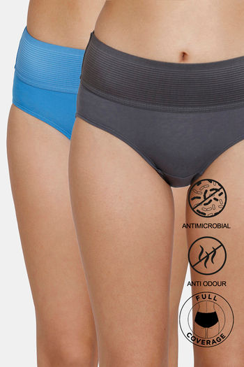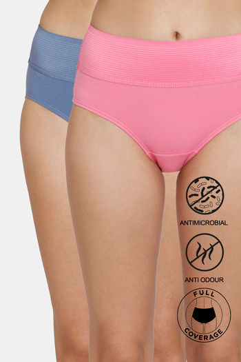 Zivame Anti-Microbial High Rise Full Coverage Tummy Tucker Hipster Panty (Pack of 2) - Multicolor