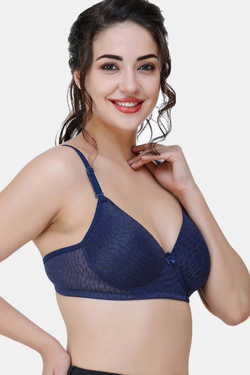 College Girl Padded Non Wired Full Coverage T-Shirt Bra - Navy Blue