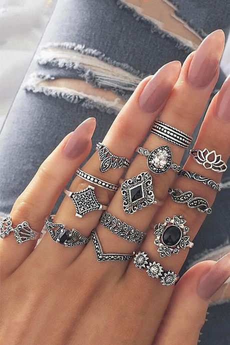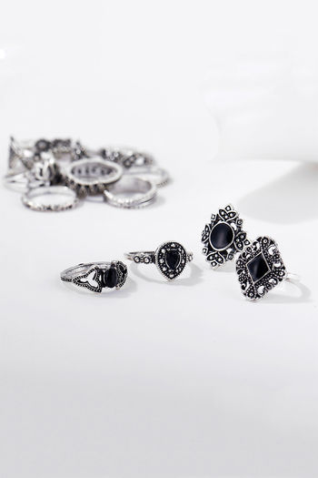 Yellow Chimes Combo 15 Pcs Vintage Silver Knuckle Rings Set - Silver