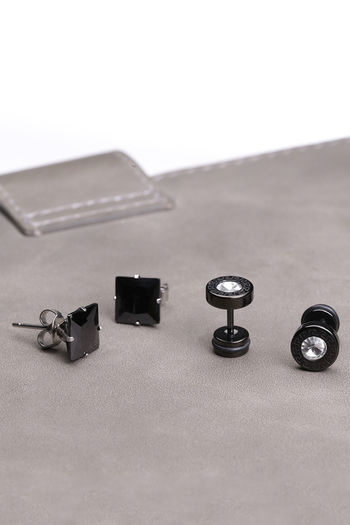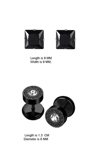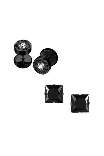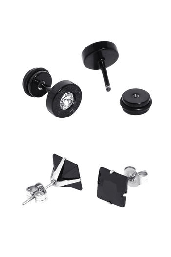 Yellow Chimes Combo 2 pairs Geometric Black-toned Crystal Studded Stainless Steel Stud Earrings