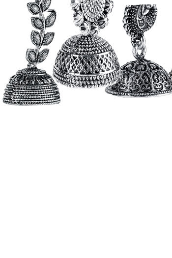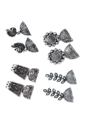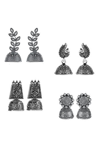 Yellow Chimes Combo of 4 Pairs Silver Oxidized Designer Traditional Drop Jhumka Earrings