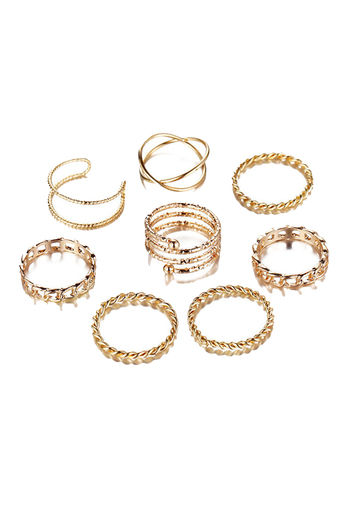 Yellow Chimes Combo of 8 pcs Vintage Style Midi Finger Gold Knuckle Rings Set - Gold